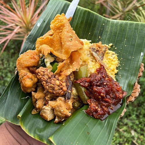 Berkonsep tempat makan sederhana dengan nuansa tradisional dan view perkebunan sayur, warung nasi ini menyediakan menu lokal yang menggugah selera.