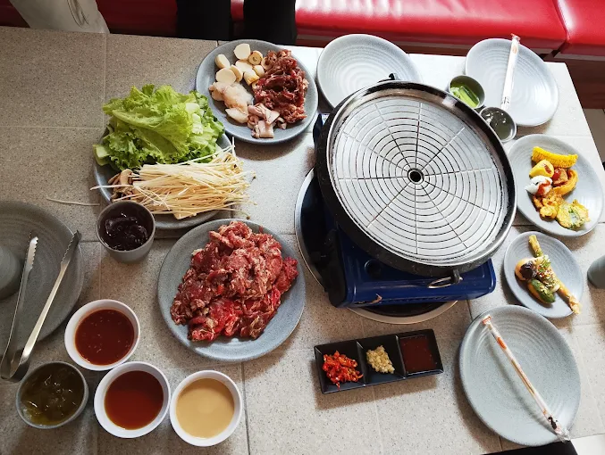 BBQ ala Korea dengan bumbu marinasi khas. Dilengkapi kimchi, tteokbokki, banchan, dan berbagai side dish khas Korea. Interior modern dan musik K-pop menambah suasana makan yang menyenangkan.