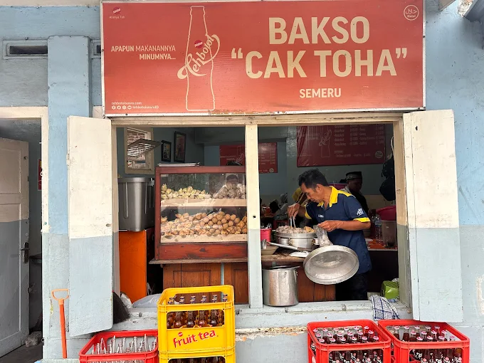 Bakso Cak Toha dikenal karena konsep prasmanan yang memungkinkan pengunjung memilih sendiri jenis bakso, gorengan, dan pelengkap sesuai selera. Kuahnya bening namun gurih, dengan aroma bawang khas yang membuat rasanya ringan tapi tetap nikmat.
