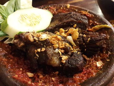 Bagi pencinta pedas, tempat ini wajib masuk daftar cobain. Iga yang sudah empuk dipenyet bersama sambal melimpah di atas cobek panas. Rasa pedas segar dari cabai pilihan berpadu dengan daging juicy, bikin makan jadi makin semangat. Porsinya cukup besar, cocok dimakan rame-rame bareng teman atau keluarga.