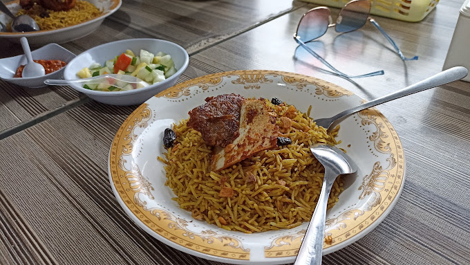Kalau mau merasakan sensasi makan nasi kebuli seperti di restoran Timur Tengah beneran, Kebuli Tarim wajib masuk list. Nasi kebuli kambingnya jadi menu andalan—dimasak dengan rempah pilihan, dagingnya lembut tanpa bau prengus, dan porsinya melimpah. Selain nasi kebuli, mereka juga punya nasi kabsah dan bukhari dengan variasi daging ayam atau kambing. Tempatnya luas, bersih, dan nyaman, lengkap dengan ruang VIP ber-AC, area salat, serta parkiran yang lega. Cocok untuk makan bersama keluarga, acara arisan, atau bukber. Begitu piring disajikan, aroma rempahnya langsung menyeruak, bikin perut keroncongan sebelum suapan pertama.