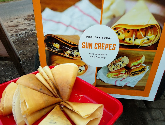 Sun Crepes Malang menawarkan sensasi berbeda dalam menikmati crepes. Dengan konsep open kitchen, pengunjung bisa melihat langsung proses pembuatan crepes yang menarik. Menu andalan di sini adalah crepes dengan topping isian daging dan pisang, yang memberikan rasa manis dan legit. Selain itu, kebersihan dan pelayanan yang ramah menjadi nilai tambah dari tempat ini.